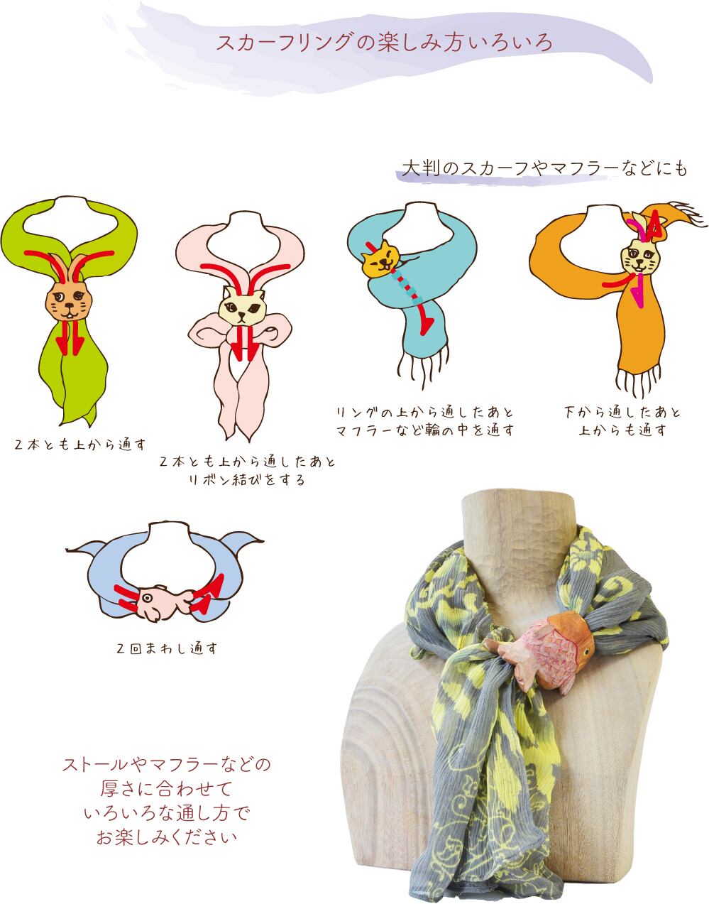 カエデの木を手彫りで仕上げたスカーフリングです。