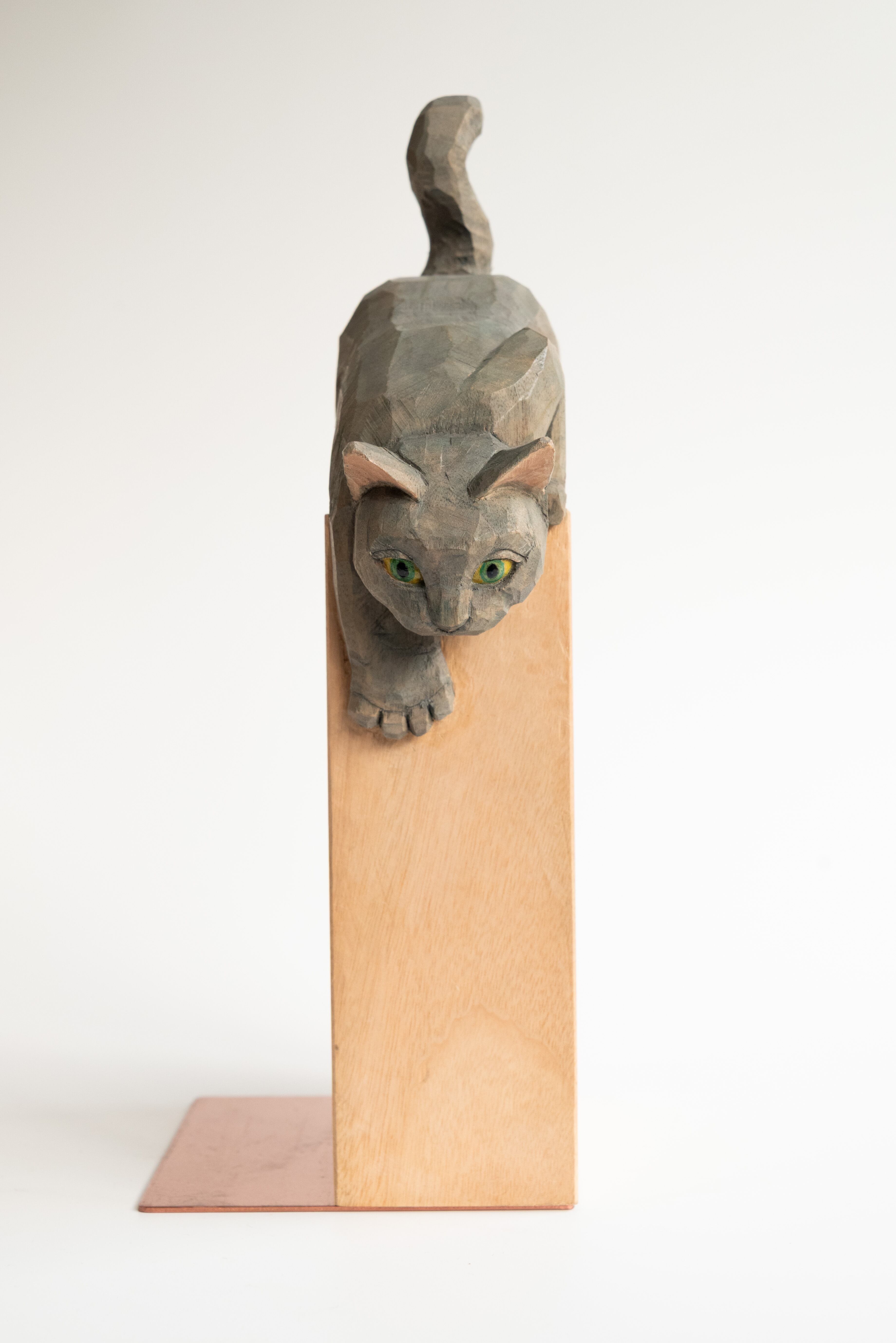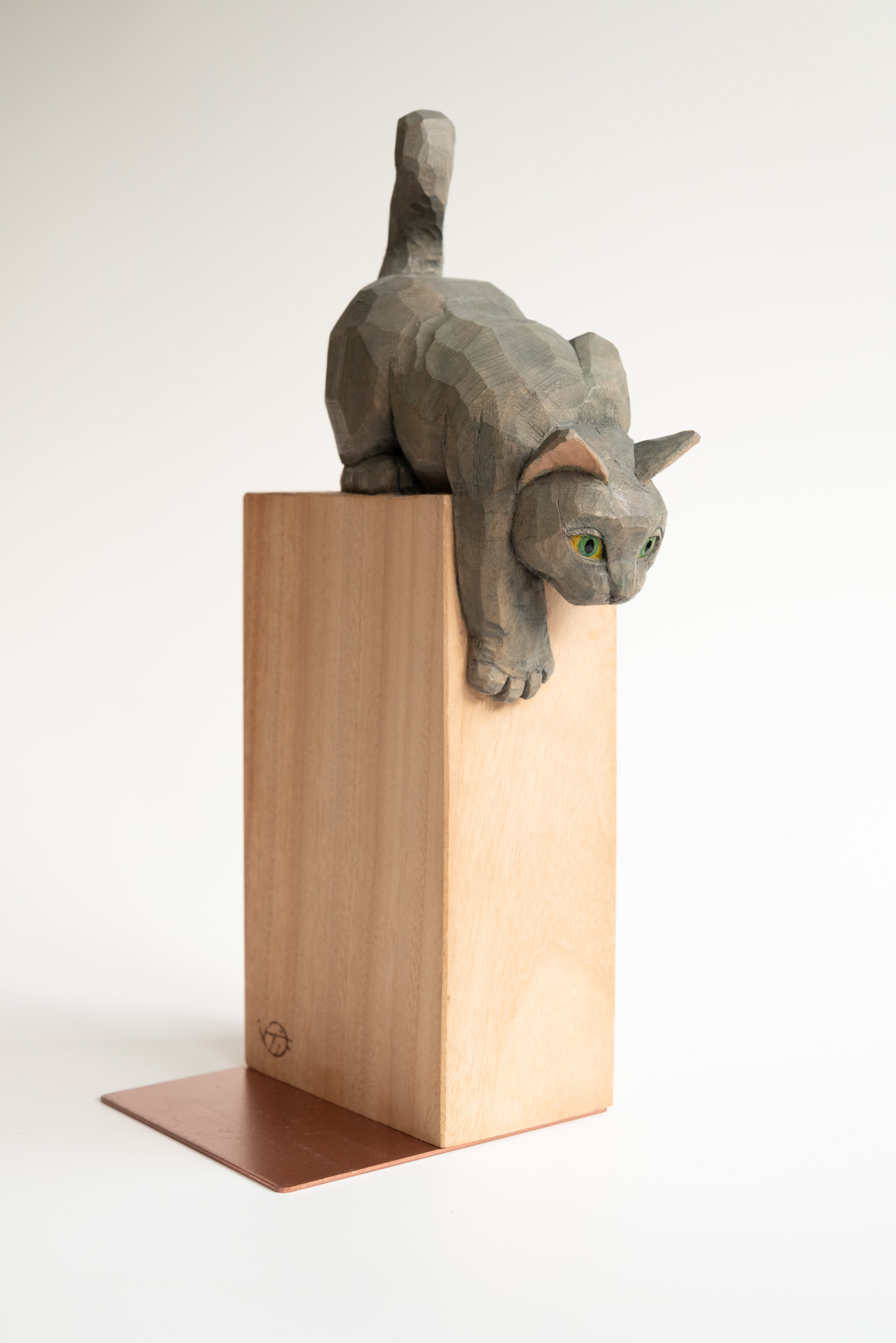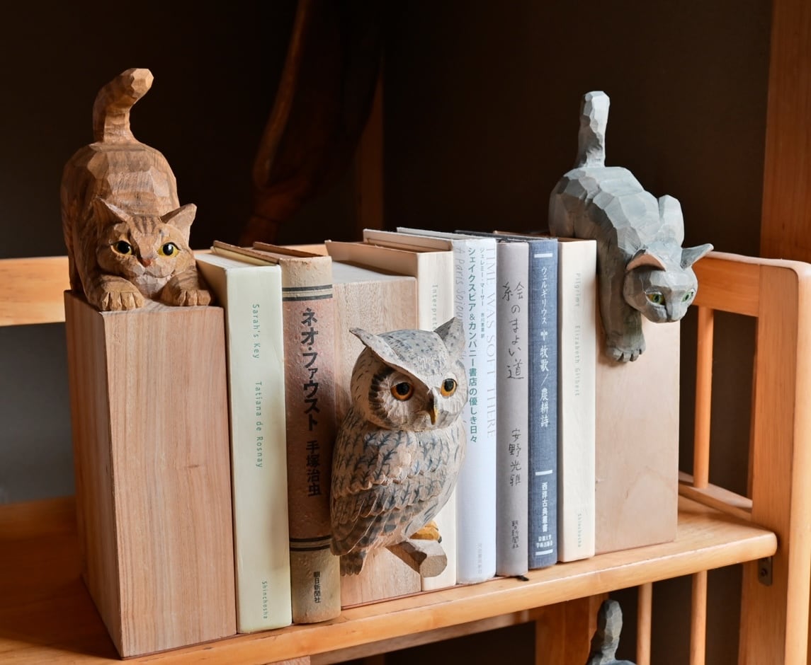 本作はブックエンドとして本棚に挟んで飾る彫刻作品です。