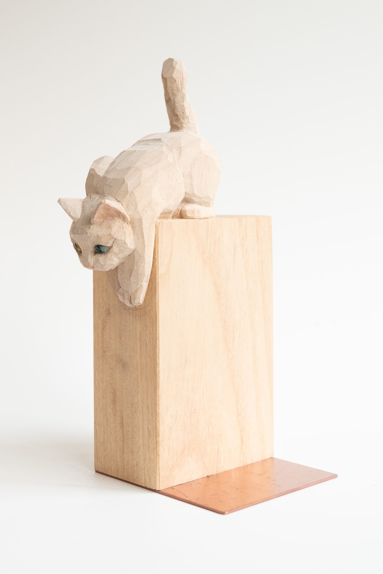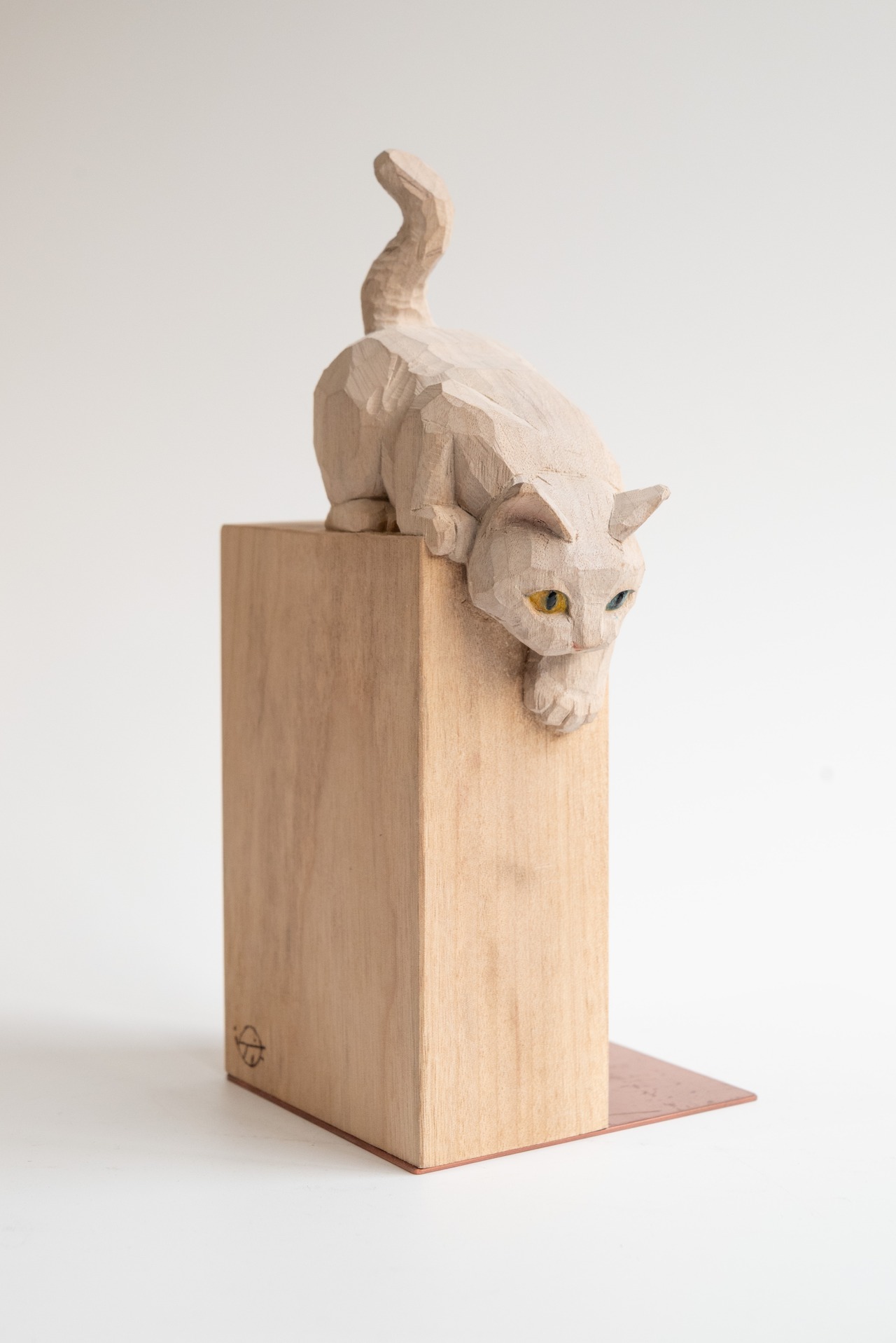 本と猫を一本の樟(クスノキ)から彫り出し