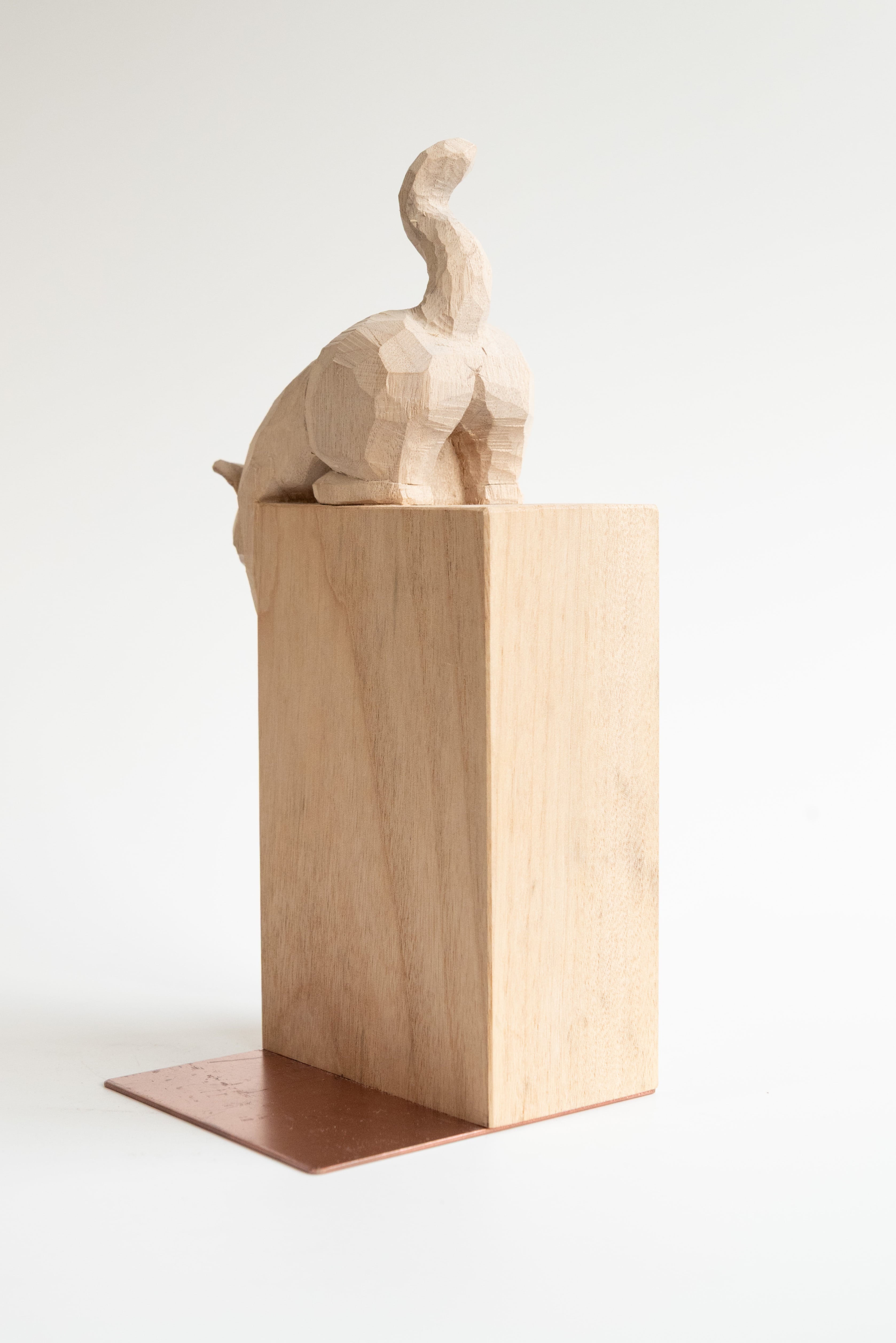 本作はブックエンドとして本棚に挟んで飾る彫刻作品です。