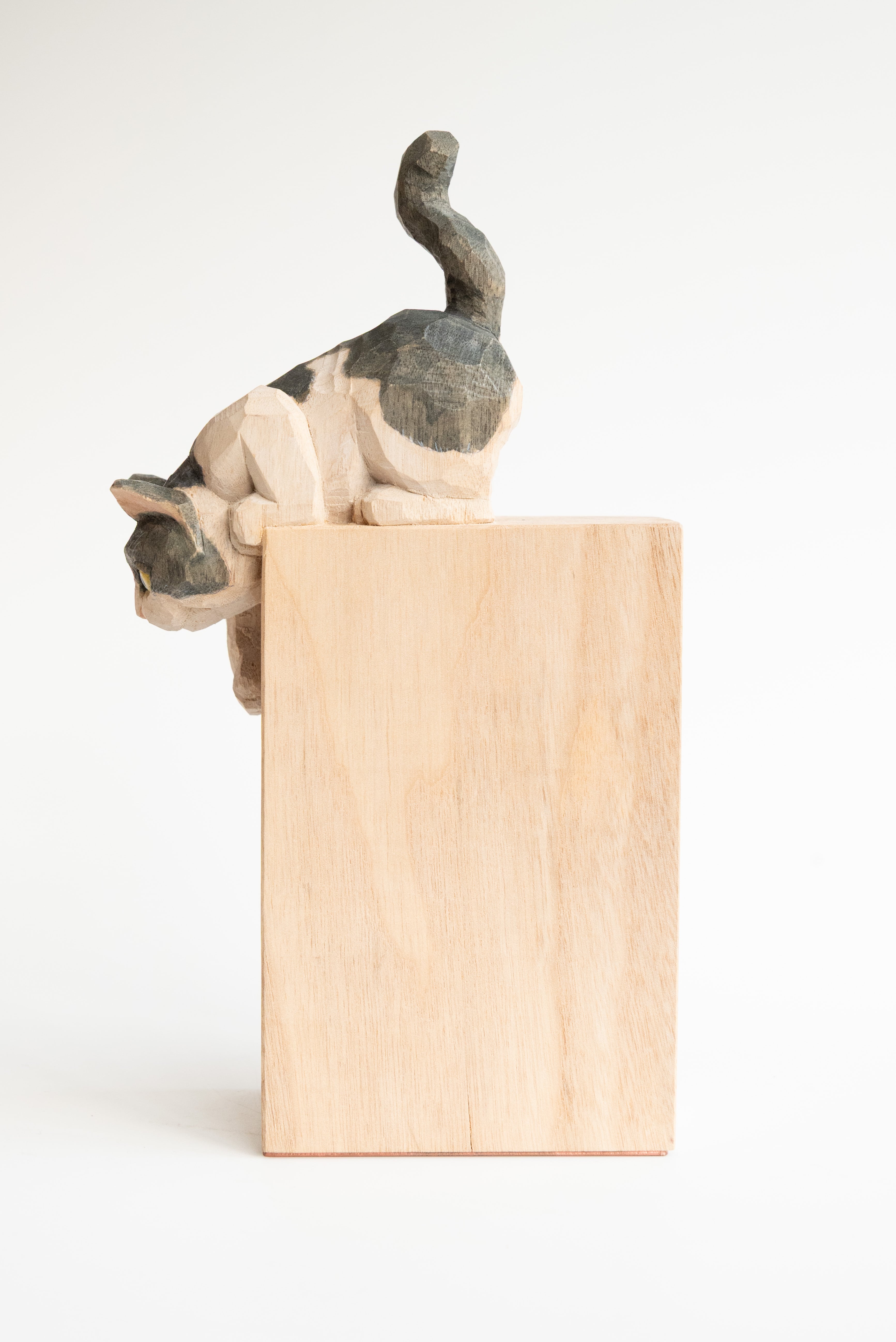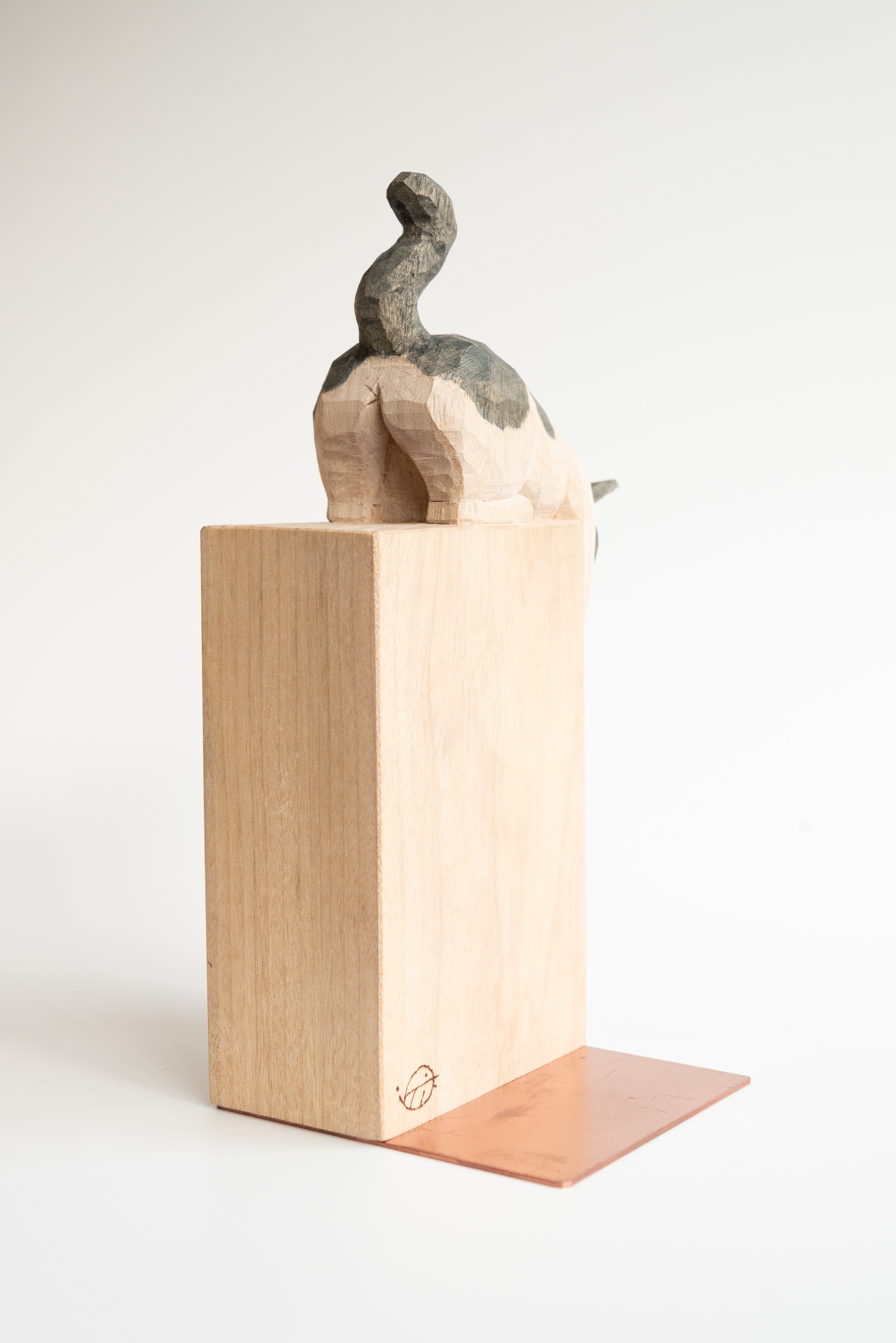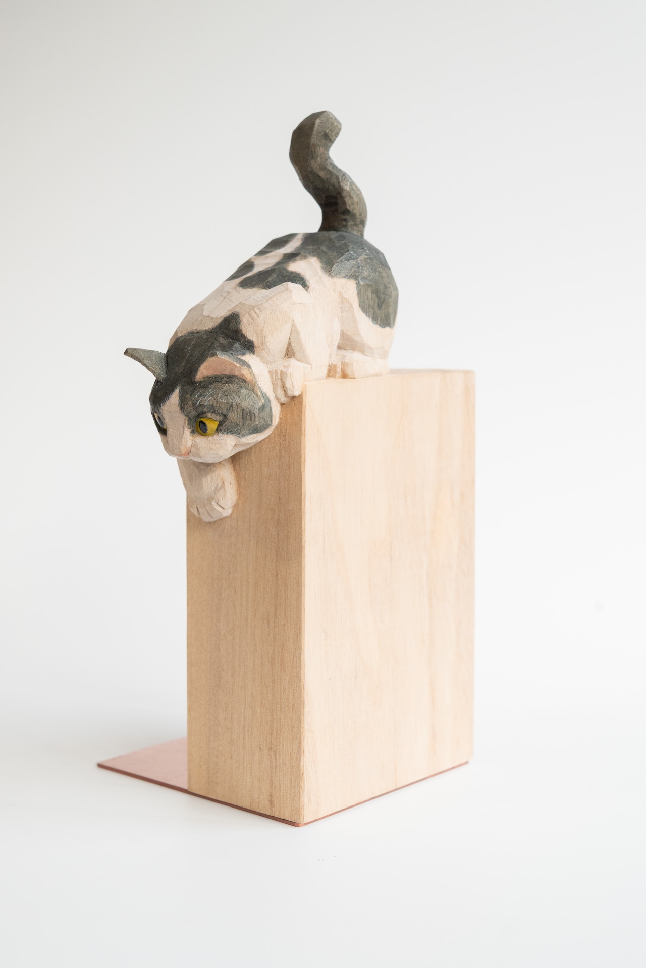 本作はブックエンドとして本棚に挟んで飾る彫刻作品です。