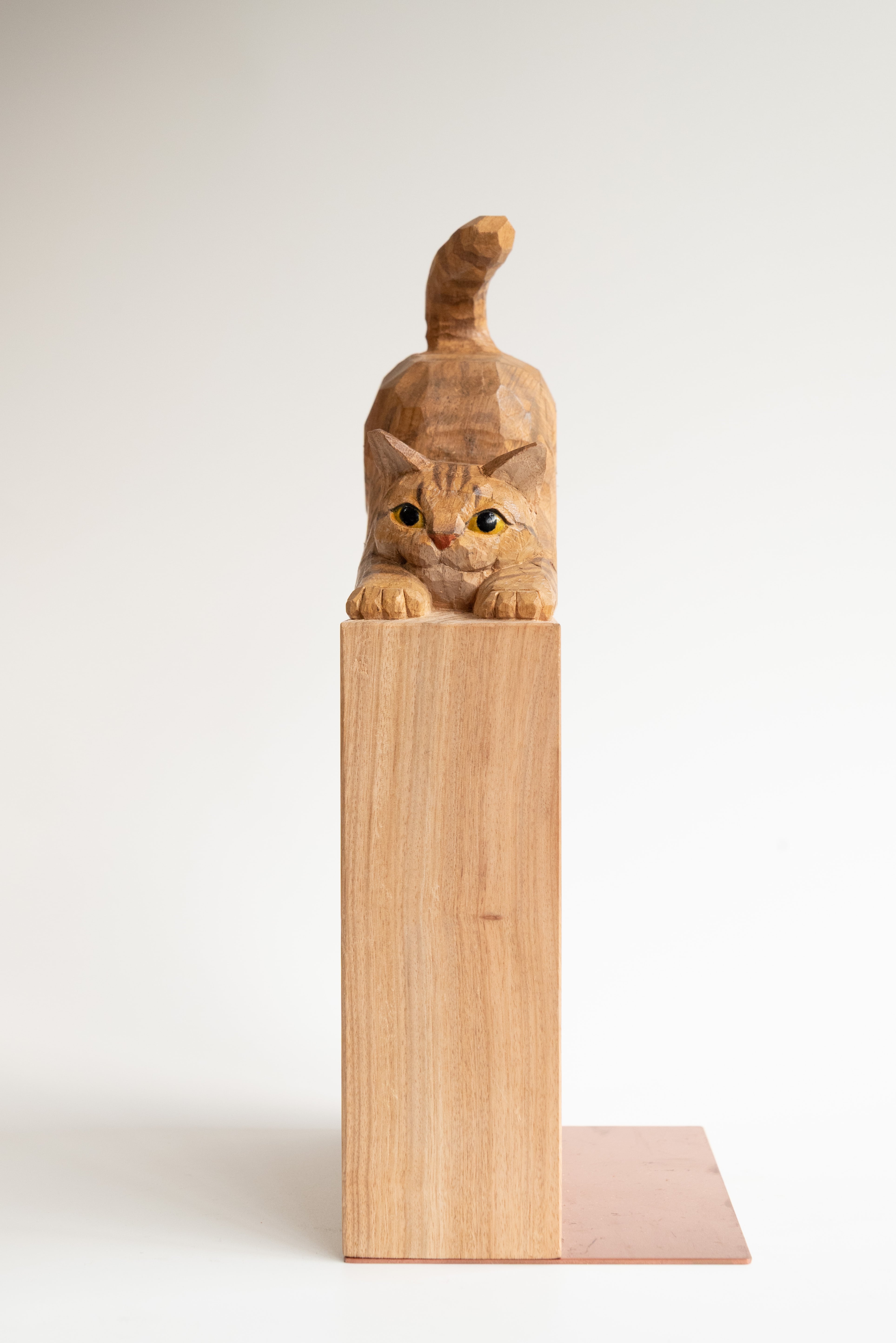 本作はブックエンドとして本棚に挟んで飾る彫刻作品です。