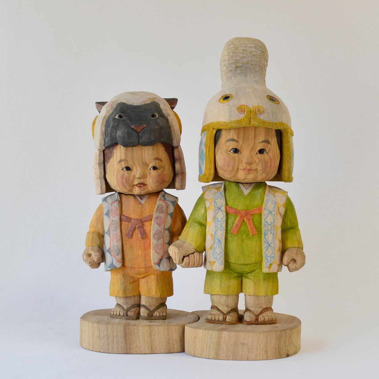 干支をかぶった、子どもの守り神「ムシャヒナ人形」シリーズは彫刻屋近正が10年つくり続けてきたオリジナルの手彫り人形です。